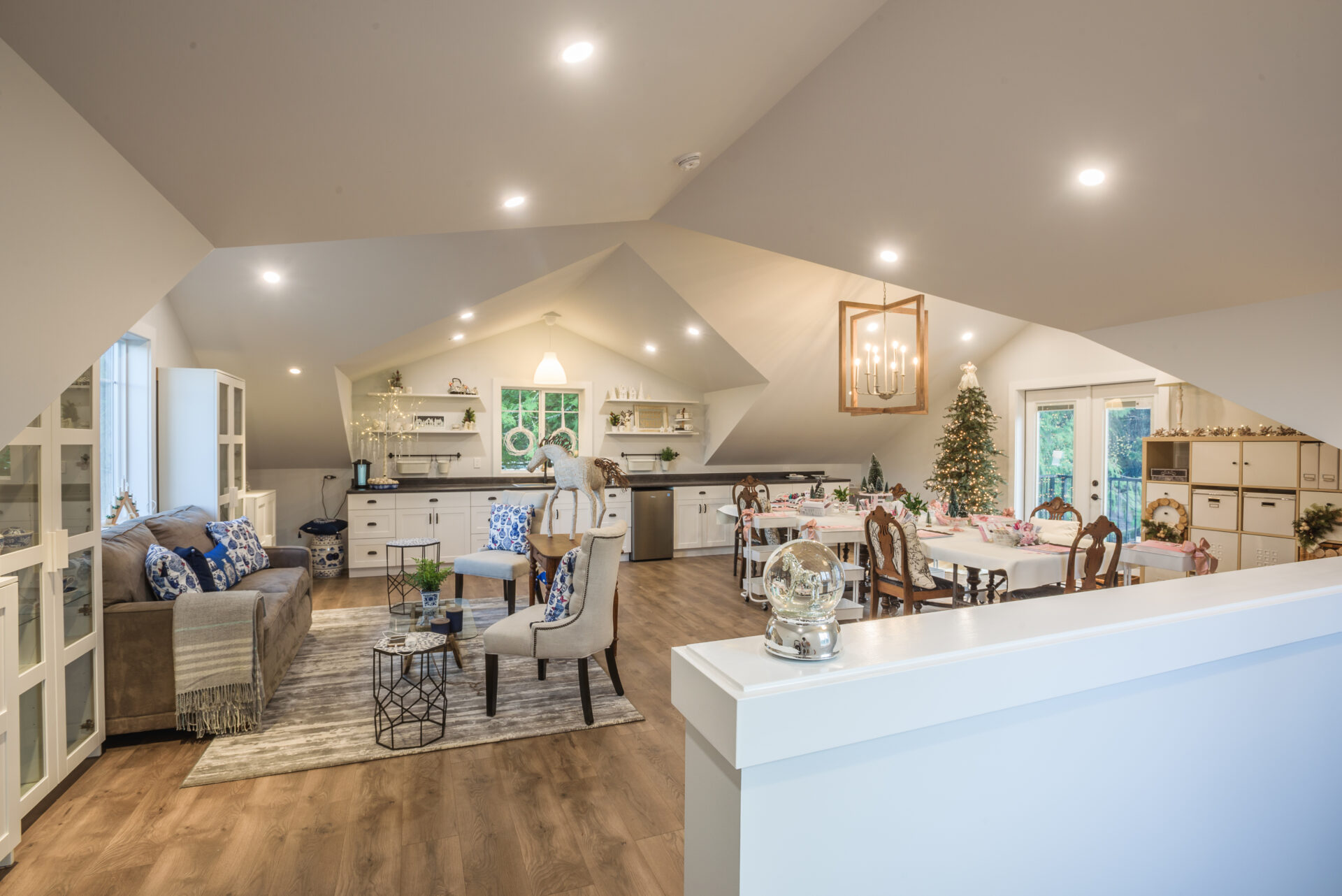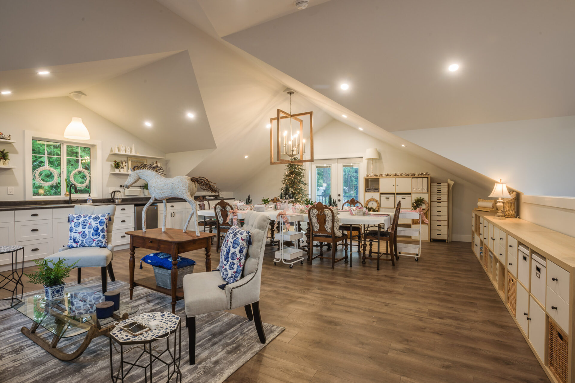 Designed and built by Creative Concepts Construction, in close collaboration with the client, this carriage house features a spacious 2 car garage with a beautifully appointed entertainment and craft and space above.