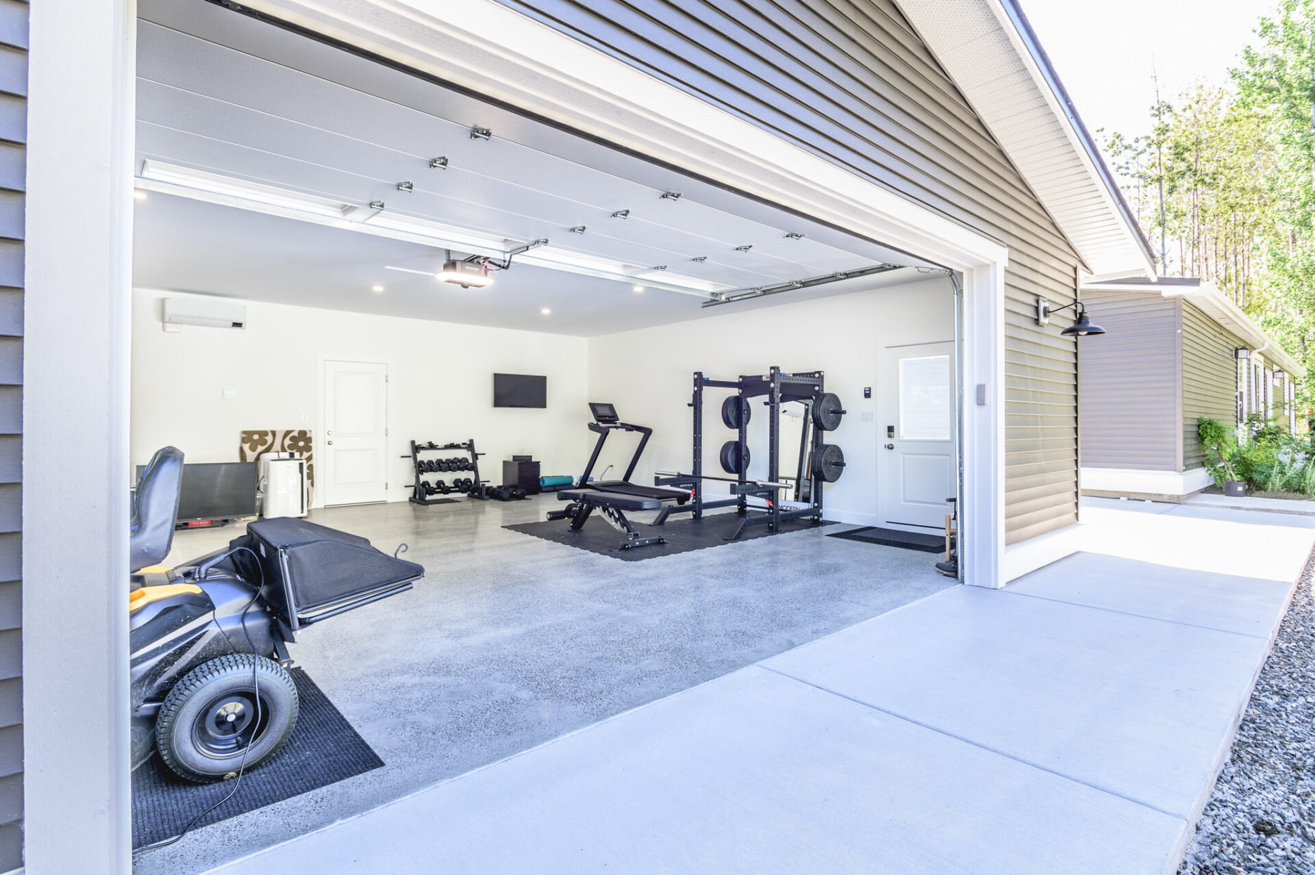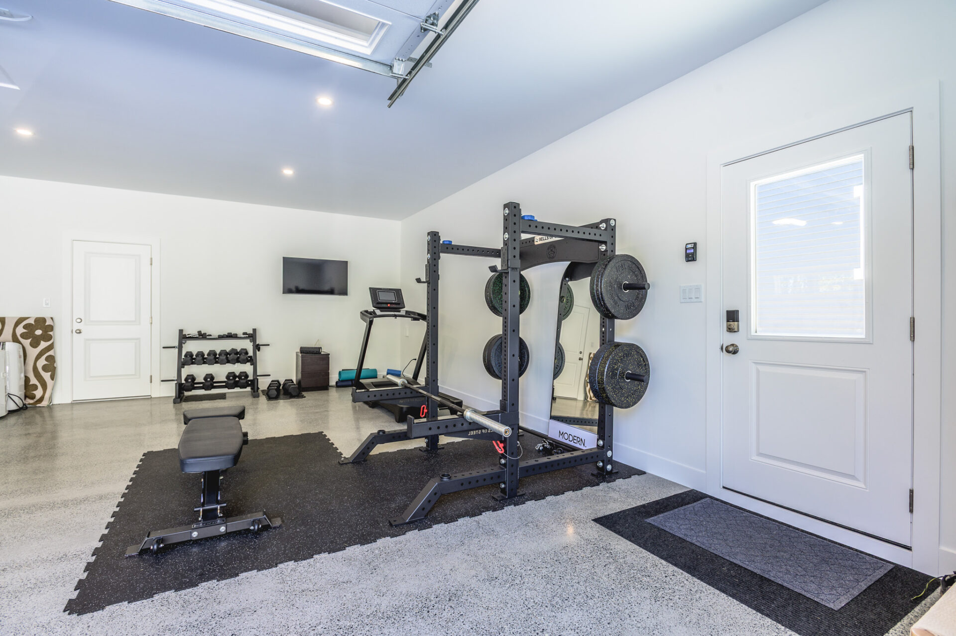 The main garage space was thoughtfully designed with the homeowners to serve as a functional workshop and home gym, meeting the clients’ needs perfectly. Working with these exceptional homeowners made the project an absolute pleasure, and the process flowed smoothly from start to finish.